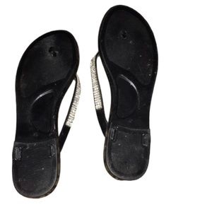 EASOS GEAL size 9.5 black jelly flip flops w/ rhinestones never worn few stones missing