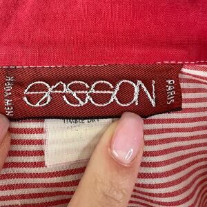 EASSON Red White Striped Long Sleeve Mandarin Collar Pocket Popover Top Blouse