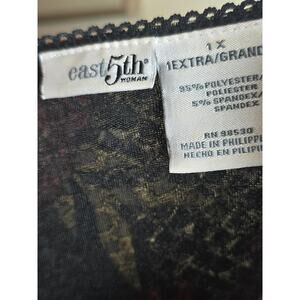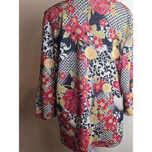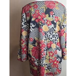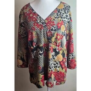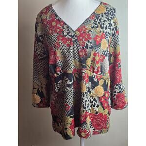 EAST 5TH Blouse Size 1XL Black, Gold, Red Floral Print 5% Spandex Long Sleeve
