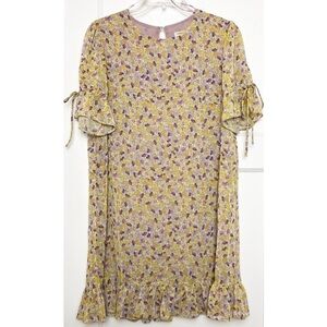 EAST ORDER Floral Chiffon Puff Short Sleeve Crew Neck Ruffle Shift Mini Dress M