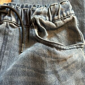 Excellent use condition pair of jeans made by EAST POINTE - size medium- drawstring adjustable waistband —five usable pockets-elastic gather at the ankle area-with extra room in the knee area.