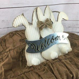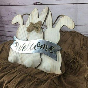 Easter Bunnies bunny rabbit Wood and Metal Welcome sign wall decor front door