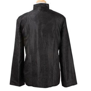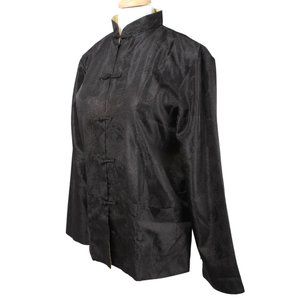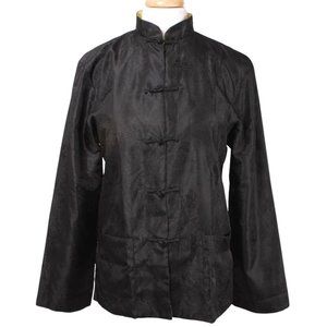 Eastern Collection reversible black to yellow traditional Asian Oriental Chinese jacket. Oriental frog closures, Mandarin collar & front patch pockets (on both sides). Unisex.