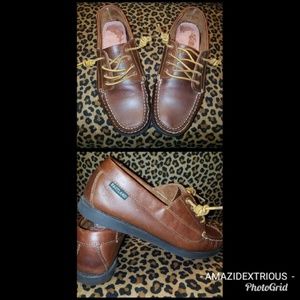 LEATHER MOCCASIN/LOAFERS BARELY BEEN USED HAVE NO DEFECTS ONLY SMALL MARKS ON LEATHER AS PICTURED. THE ONLY THING TO NOTE IS THERE ARE NO INSOLES. SUPER CUTE SHOES VINTAGE STYLE 80's and 90's WITH LACE KNOTS ♡♡♡