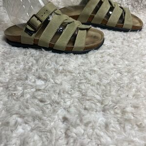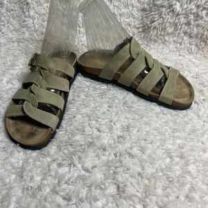 EASTLAND Nubuck Leather green straps fat sandals size 8.