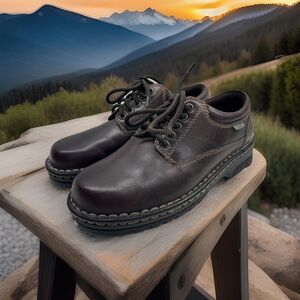 The EASTLAND Plainview Leather Oxfords are a stylish and comfortable pair of women's shoes in size 9.5. Made from high-quality leather in a classic brown color, these oxfords feature a flat design with a loafer style. The Eastland brand ensures durability and quality, making these shoes a versatile and timeless addition to any wardrobe. Perfect for everyday wear or special occasions, these oxfords offer both fashion and functionality for the modern woman.
