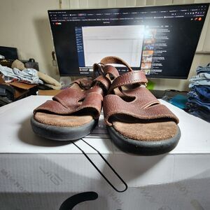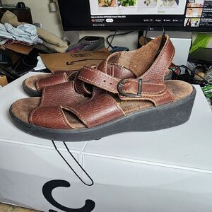 EASTLAND Womens Brown‎ Leather Ankle Strap Sandals Buckles Size 8