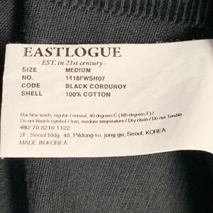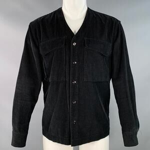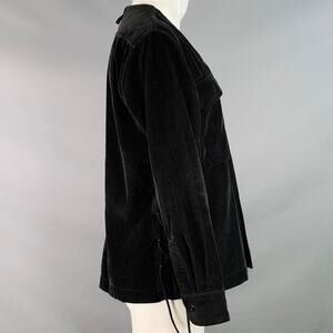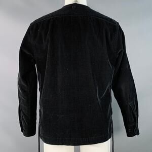 EASTLOGUE Size M Black Corduroy Cotton Collarless V-Neck Jacket