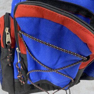 Stay organized and ready for any workout or adventure with this never used lightweight athletic backpack, perfect for the gym, sports practice, hiking, or everyday use. Designed for both durability and convenience, this bag features multiple zippered compartments and mesh side pockets, making it ideal for carrying gym clothes, shoes, towels, and water bottles. The adjustable padded shoulder straps provide comfort during long wear, while the drawstring and buckle closures keep your belongings secure. Its compact yet spacious design ensures you can pack all your workout essentials without feeling weighed down. The bold blue and red color combination adds a sporty look, making it great for both adults and teens.