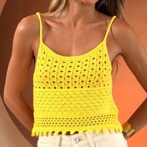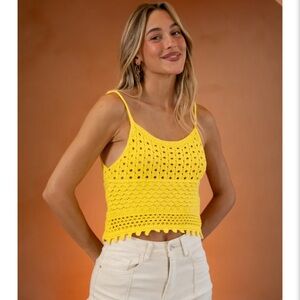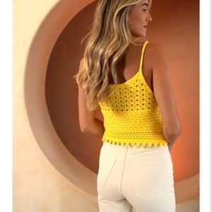 Brighten your wardrobe with this stylish yellow crochet top. Perfect for casual outings or a day at the beach. A perfect top for under a jacket. Trusted seller.