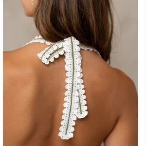 Stylish green crochet crop top with white trim and daisy accents. Perfect for a casual day out. Trusted seller