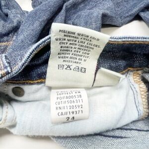EASY MONEY Women’s Blue Dark Wash BENNIE Skinny Jeans Raw Hem Low Rise Size 24. Good pre-owned condition. Gentle signs of wear. No stains, holes or snags. All measurements are approximate.