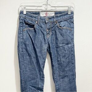 EASY MONEY Women’s Blue Dark Wash BENNIE Skinny Jeans Raw Hem Low Rise Size 24