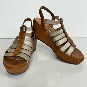 EASY SPIRIT Caramel brown and gold AVINNA platform wedge sandals size 7