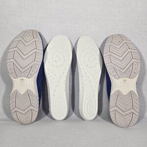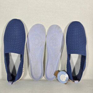 EASY SPIRIT Arch Support Orthotic Friendly Tech Eco Sustainable Breathable Stretchy Recycled BLUE Knit Upper Slip On Round Toe Walking Comfort