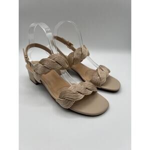 EASY STREET WOMEN'S 'CHAREE' HEELED DRESS SLIP ON BUCKLE SANDAL BEIGE WOVEN 9M