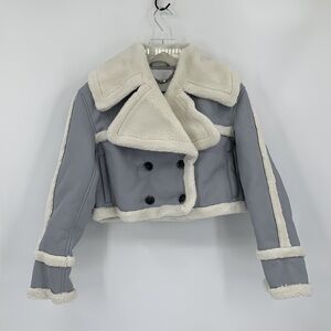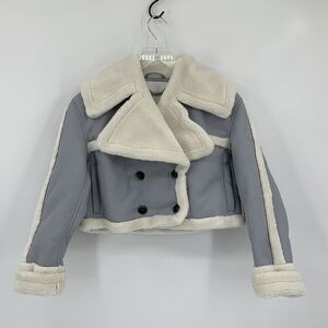 EAVES Elijah jacket coat double breast boxy gray faux leather shearling fur XXS