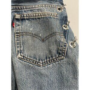 Description from retailer: Button fly. back slip pockets. Silver-tone chain link cut out design at hips.
