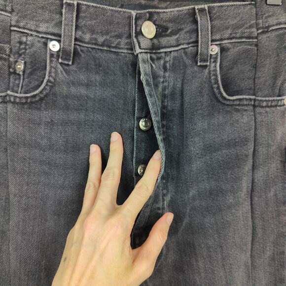 EB Denim Jeans Womens 25 Charcoal Wash Straight Leg Pieced Split Hem Patchwork