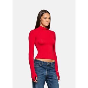 EB Denim Swan Mock Neck Top in Red XS