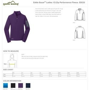 Please can’t us for box price 385-394-8828 Smooth-faced fleece with a subtle grey print gives this 1/2-zip a sleek performance look. Reverse coil zipper, open cuffs and an open hem. Princess seams, welded zippered left sleeve pocket, contrast Eddie Bauer logo heat transfer on right hem. Made of 12.8-ounce, 95/5 poly/spandex.