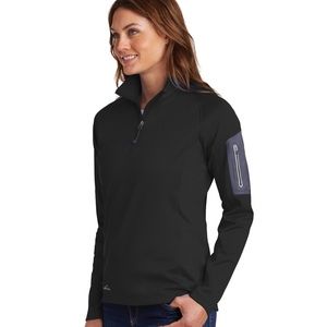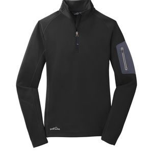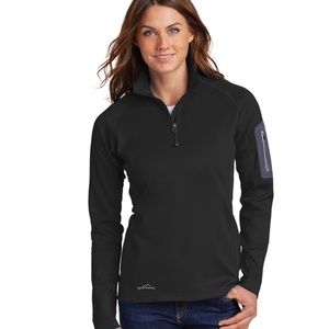 Please can’t us for box price 385-394-8828 Smooth-faced fleece with a subtle grey print gives this 1/2-zip a sleek performance look. Reverse coil zipper, open cuffs and an open hem. Princess seams, welded zippered left sleeve pocket, contrast Eddie Bauer logo heat transfer on right hem. Made of 12.8-ounce, 95/5 poly/spandex.