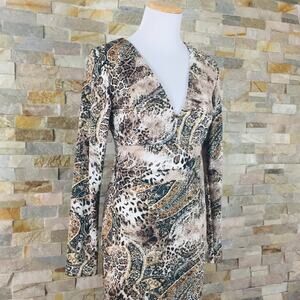 Item: Animal Print Long Sleeve Plunge Neck Dress