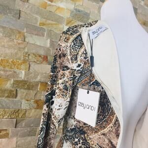 Ebby and I is contemporary women's fashion designed in South Wales, Australia. Has gorgeous hi-low draped skirt. Sexy plunge neckline. Zipper back. Long Sleeves. Stretchy for a comfortable fit. Elegant dress for a night out!