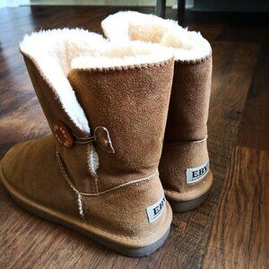 EBV Australia Shearling Boots Side Button Closure Tan Size 10