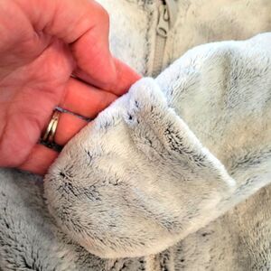Super soft! Can keep hands covered or uncovered. Zip in the front. 100% Polyester. Chest:12" from armpit to armpit. Inseam:9". Length:19" from the armpit down. Smoke-free, pet-free home.