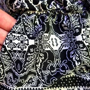 Excellent condition! Keyhole opening in the back. Elastic around the waist and sleeves. 100% Polyester. Silky feel. Chest:19" from armpit to armpit. Waist:16" from side to side, but it has elastic. Hips:21" from side to side. Length:25" from the armpit down. Inseam:3.5". Smoke-free, pet-free home.