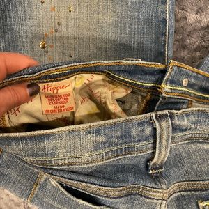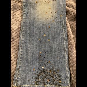 Excellent Condition Hippie brand gold and bronze embellished jeans sz30/11. These are so so cute and definitely statement piece for your closet. Only listing because I lost weight and held on to them for quite a while in case I could wear them again but it’s been too long. Bought at Nordstrom’s.