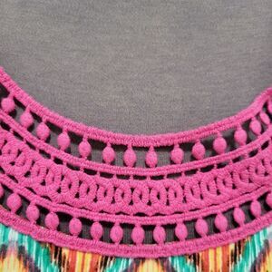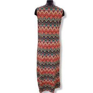 EC JONES NEW YORK SLEEVELESS IKAT MAXI DRESS W/ FUSHIA EMBROIDERY SZ.M