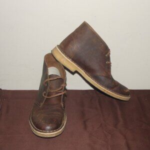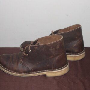 EC LADIES CLARKS CHUKA BOOTS - 9 1/2 - BROWN LEATHER