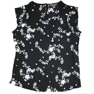 Pocket on the left side of the chest. Keyhole opening in the back. Cap Sleeves. Small slit on the bottom or each side. Chest:19" from armpit to armpit. Waist:18" from side to side. Hips:20" from side to side. Length:18" from side to side. 100% Polyester. Excellent condition! Smoke-free, pet-free home.