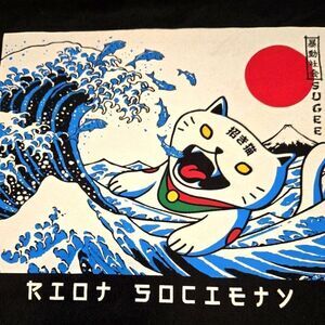 EC RIOT SOCIETY SUGEE WAVE LUCKY CAT 100% COTTON SHIRT SZ. S