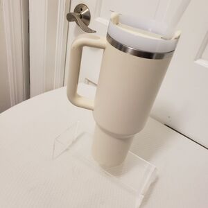 lovely preowned neutral in color holds hot and cold liquids