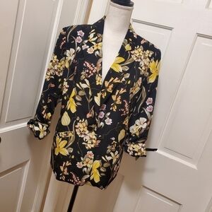 EC Susan Graver Floral Print Colorful Blazer Size 14, Preppy, casual
