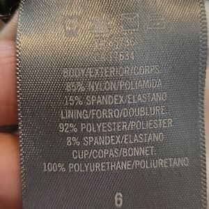 In excellent condition! Materials are in the pics. I am going to give flat lay measurements that are from where I have it tied. You can make it tighter or looser if needed. Chest-13.5" from armpit to armpit. Waist-10" from side to side. Hips-13" from side to side. Length-9" frombottom of armpit to bottom of the hips. 13" from where strap starts to bottom of the hips.