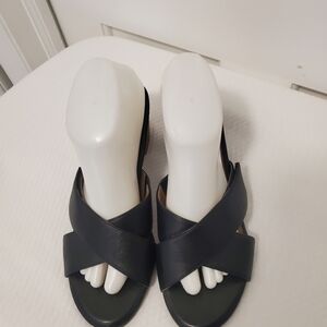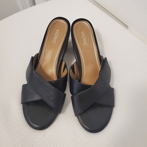 EC Vionic Lorne Black Leather Crisscross Sandals Size 10, Business, Classic