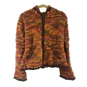 ECC Ecuadorian Clothing Company Wool Hood Full Zip Sweater Orange Textured Small.