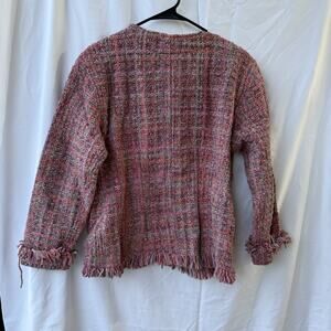 E.C.C. Ecuadorian Handmade Wool Cotton Fringe Jacket Pink Textured Tweed Size L