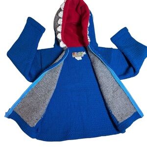 ECC Shark Sweater 100% Wool Full Zip Youth 6 Blue Gray Ecuadorian Clothing Co