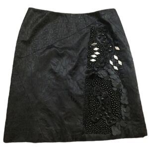 ECCETERA Black Silk Embellished Beaded Applique Design Mini Skirt 6.