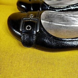 ECCO Ballet Flat Black Patent Round Toe Buckle Wedge Slip-On Casual Women's Shoe Size 7-7.5