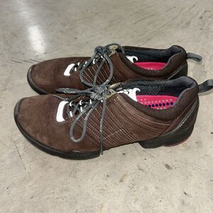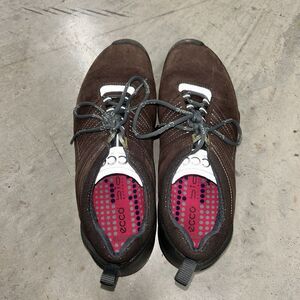 **minimal wear, tread still very good. Experience the ultimate comfort and support with these ECCO Biom Natural Motion sneakers. Crafted with high-quality brown leather, these shoes are designed to provide a smooth and natural motion, making them perfect for walking. The low top shoe shaft style and standard shoe width ensure a secure and comfortable fit, while the ECCO Biom technology provides superior performance and activity. These unisex athletic shoes are perfect for nature enthusiasts and those who value comfort and style. With a sleek and modern design, these sneakers are suitable for any occasion. The shoes also feature a unique theme, which is perfect for those who love nature. Buy now and experience the ultimate comfort and support with these ECCO Biom Natural Motion sneakers.