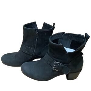 ECCO Black Ankle Boots Buckle Strap Block Heel Sz 6 Punk Emo Retro City Boho