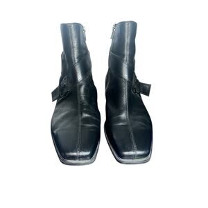 ECCO Black Leather Ankle Boots Size 40 (9-9.5) Buckle Strap Low Heel