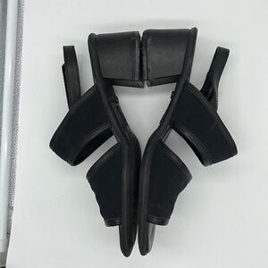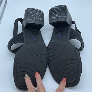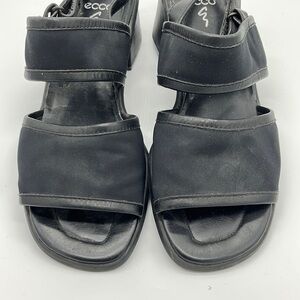 ECCO Black Strappy Leather Canvas Block Heel Open Toed Sandals Size 7
