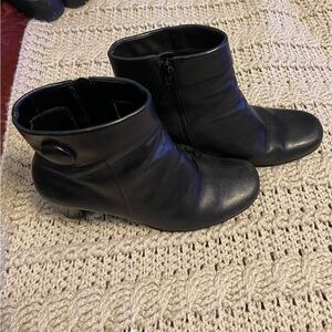 ECCO Black leather side zip ankle Boots Button accent size 10.5 dress heels